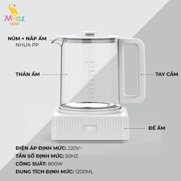 Đặc biệt, sản phẩm được làm từ chất liệu an toàn cho trẻ nhỏ và thân thiện với môi trường, điều này làm tăng tính ứng dụng và an tâm khi sử dụng cho cả gia đình. Với dung tích 1,2 lít, bình đun Moaz BéBé MB-055 không chỉ giúp pha sữa cho bé mà còn phù hợp để pha trà, cà phê và các loại đồ uống khác cho toàn bộ thành viên trong gia đình.