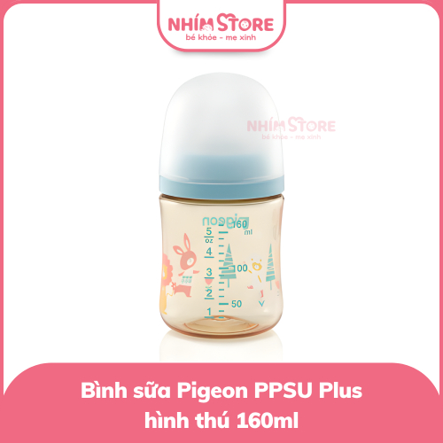 – Bình sữa Pigeon PPSU Plus WN3 Nhật Bản in hình thú cưng 160ml thiết kế dễ cầm nắm
