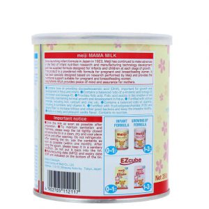 Sữa bầu cho mẹ Meiji Mama Milk 350g cung cấp các chất dinh dưỡng cần thiết giúp tăng cường sức khỏe cho các bà mẹ đang trong giai đoạn mang thai hoặc đang cho con bú cũng như sức khỏe và sự tăng trưởng của thai nhi và trẻ sơ sinh. Điểm đặc biệt của sản phẩm đó là ngoài các dưỡng chất cần thiết như là proteins, chất béo, và carbohydrates thì sữa Meiji Mama Milk 350g còn cả các loại vitamin và khoáng chất bao gồm sắt, can-xi, kẽm, axit folic, những thành phần thường khó hấp thụ qua đường ăn uống trong quá trình mang thai và dưỡng sức.