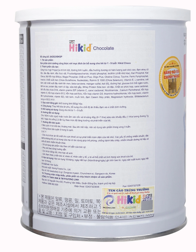 Sữa Hikid của hãng ILDONG – chuyên về thực phẩm nổi tiếng của Hàn Quốc với hàm lượng canxi cao sẽ giúp bé phát triển chiều cao tối ưu.Sữa phát triển chiều cao Hikid với công thức đặc biệt bổ sung thêm DHA giúp bé phát triển trí não và sữa non (IgG) giúp bé tăng cường hệ miễn dịch.