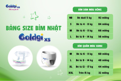 Hướng dẫn chọn size bỉm quần Goldgi+ X5 cho bé